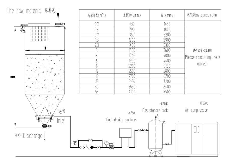 在混合机底部蓄压的空气瞬间喷射时,罐头内的粉粒体就变成沸腾状态,开始充分搅拌混合。喷入的空气由上方的空气过滤器排出。喷射很短的时间和消耗很少的压缩空气,就能够充分混合和高效匀质。结合原料输送,引入触摸屏和PLC控制,可以很方便组建原料自动处理生产线。